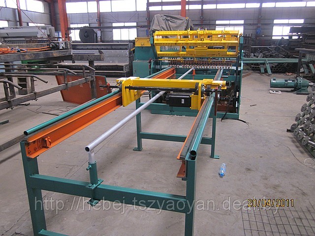 Станок работает от электродвигателя , регурирует сварное давление легко и удобно, имеет загрузочный желоб, который передается от шагового электродвигателя, свободно регурирует размер ячейки в области, продольная проволока подавается и сетка вытягивается при помощи шагового электродвигателя. Продольно и поперечно подаваемая проволока предварительно выпрямляется и нарезается. |