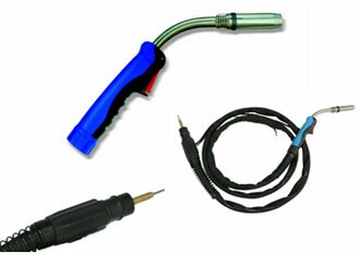 Горелка оснащена двумя отдельными каналами для подачи сварочной проволоки и защитного газа, т.е. при перегибе шланга проволока не будет блокировать подачу газа и сварочный шов не остается без защиты